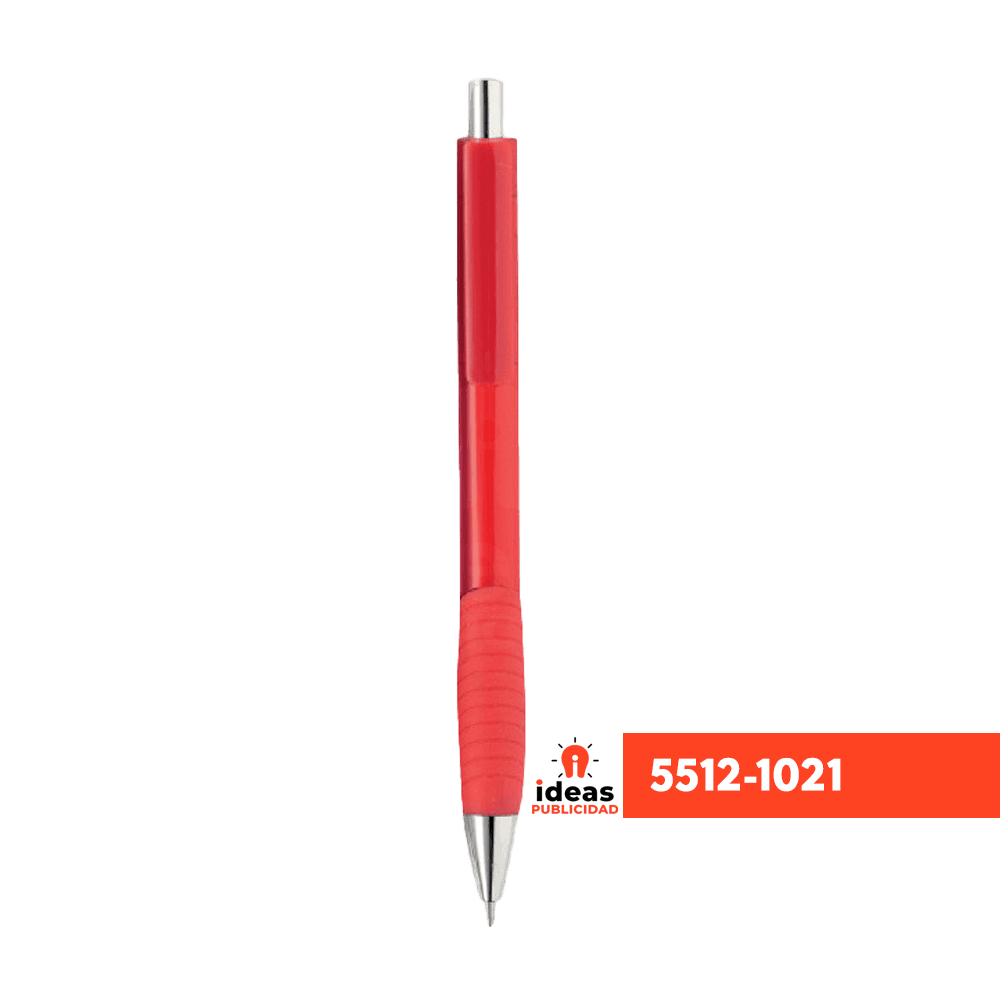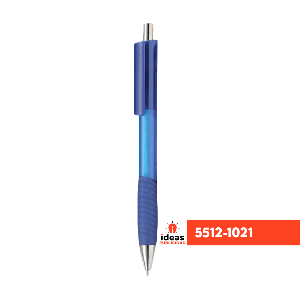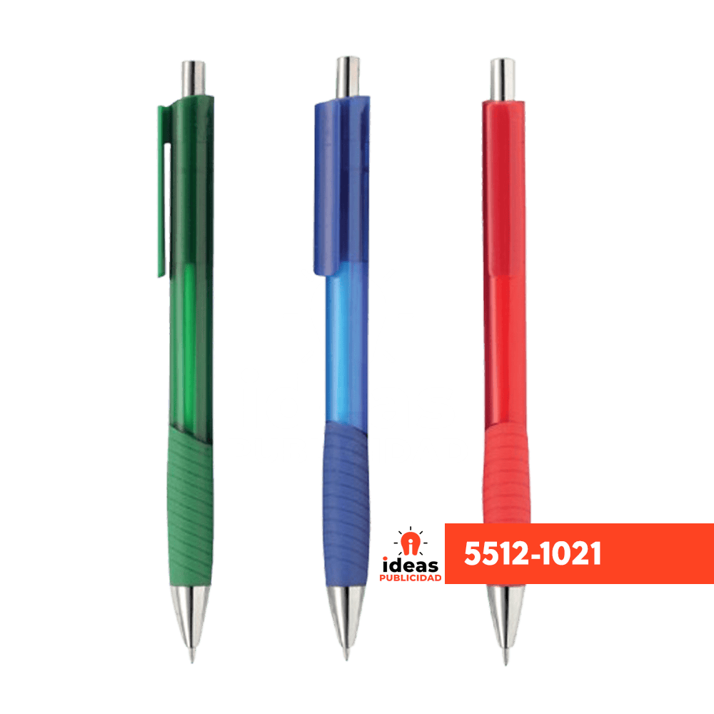 | Caracteristicas: | Bolígrafo de plástico cuerpo traslúcido, grip de silicón, botón y punta cromada |