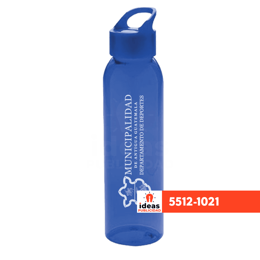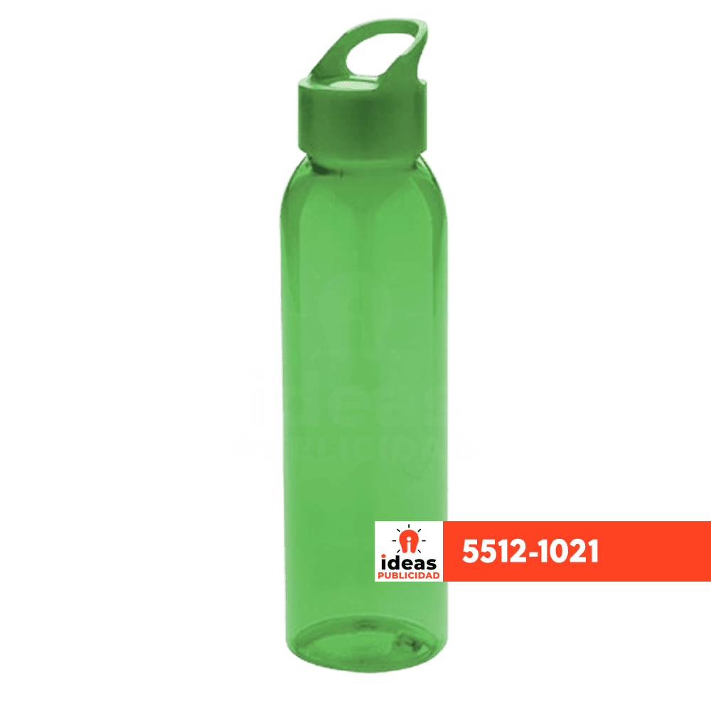 Botella de plástico translúcido con tapa y asa integrada 24cms x 6cms